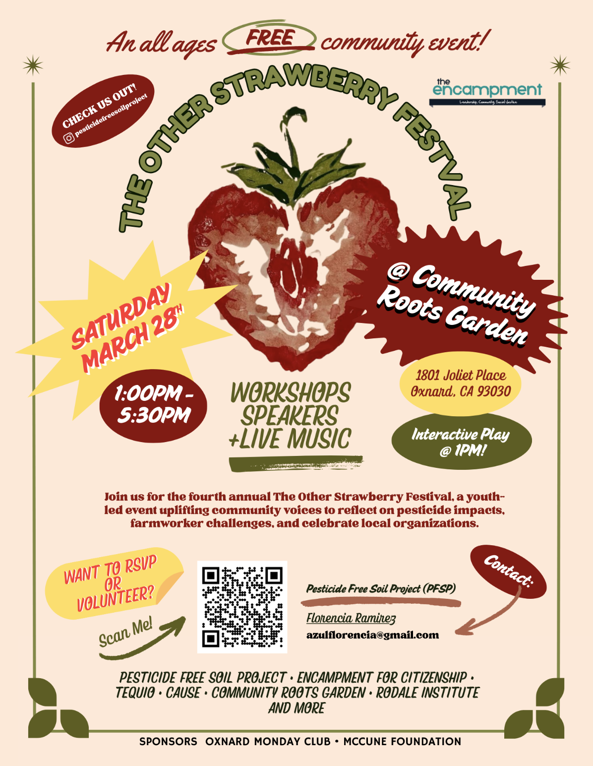 It will take place at Community Roots Garden, located on the property of the United Methodist Church of Oxnard. For over a decade, this garden has grown pesticide-free produce that is distributed free of charge to community members.